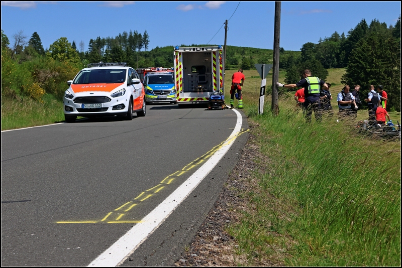 HARFELD. Ein zufällig vorbeikommender Förster hat am Donnerstagmittag bei einem schweren Verkehrsunfall auf dem Harfeld einem schwerst verletzten Motorradfahrer das Leben gerettet. Der 44-jährige Motorradfahrer war auf der Kreisstraße 53 von Bad Laasphe kommend in Richtung Richstein unterwegs, als er kurz vor der Gemarkung Harfeld nach rechts von der Fahrbahn abkam und gegen einen Holzmast fuhr. Dabei erlitt der Mann schwere, lebensbedrohliche Verletzungen und kam in einer angrenzenden Wiese zum Liegen.