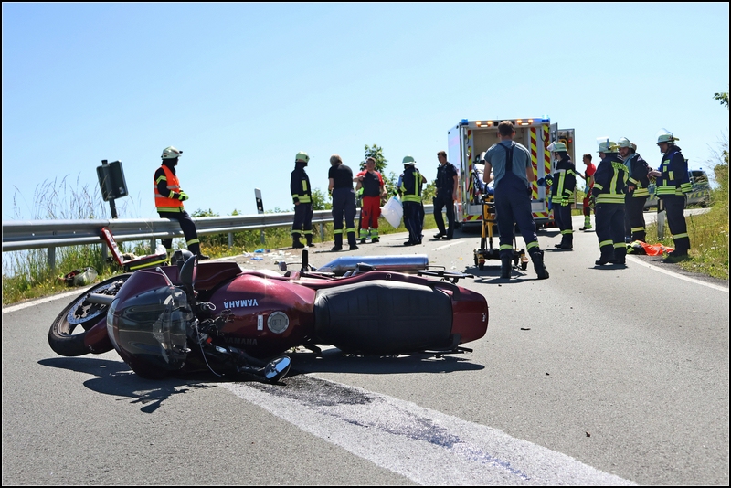 Wie die Polizei vor Ort mitteilte, war der Mann als letzter Fahrer einer achtköpfigen Gruppe von Stünzel nach Weidenhausen unterwegs. Aus unklaren Gründen geriet er jedoch nach rechts auf den unbefestigten Randstreifen und stürzte in der abschüssigen Strecke. Er schlug beim Sturz in die Leitplanken ein und erlitt dabei nach dem Aufprall auf einen der Pfosten schwere Verletzungen. Seine Maschine rutschte über die Fahrbahn und blieb quer auf der Straße liegen.