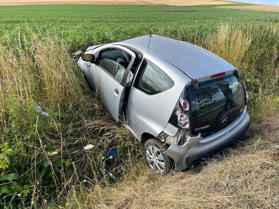 Am Freitag, 4. Juli, gegen 9.30 Uhr fuhr eine 67-Jährige mit ihrem Citroen auf der L 838 von Warburg in Richtung Daseburg. In Höhe des Desenberges kam sie nach rechts von der Fahrbahn ab und geriet in den Graben. Der Citroen prallte mehrfach gegen die Böschung, am Fahrzeug entstand wirtschaftlicher Totalschaden. Die Fahrerin erlitt leichte Verletzungen.