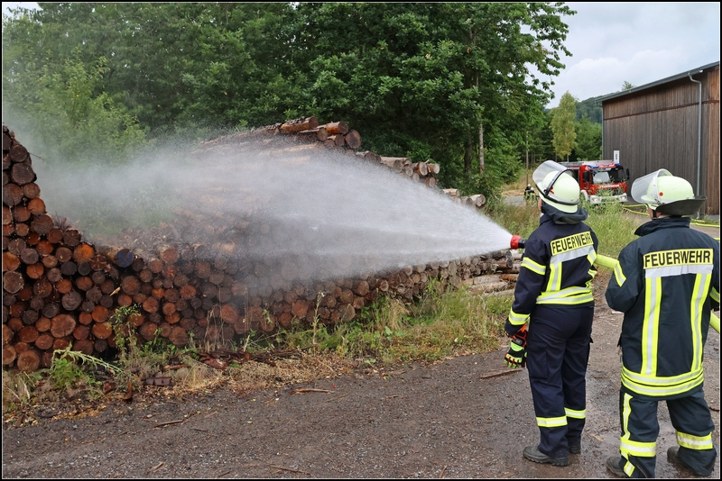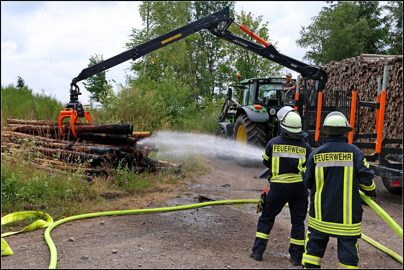 ELSOFF. Brandstiftung an einem Waldweg am Arfelder Berg bei Elsoff: Am Montagnachmittag bemerkte ein Autofahrer starke Rauchentwicklung an einem Feldweg am Arfelder Berg unweit des Wasserhochbehälters. Der Autofahrer fuhr zurück und stellte einen brennenden Holzstapel fest, woraufhin der Mann die Feuerwehr alarmierte. Beim Eintreffen der ersten Einsatzkräfte schlugen bereits Flammen aus dem großen Polter mit Fichtenstämmen. Die Feuerwehrleute aus Schwarzenau, Arfeld, Elsoff und Alertshausen löschten die Flammen schnell ab. Ein Landwirt aus der Nachbarschaft kam den Einsatzkräften mit einem Rückezug zu Hilfe und konnte die angebrannten Fichtenstämme aus dem großen Stapel herausnehmen und am Wegesrand ablegen, so dass die Feuerwehrkameraden die Stämme nochmals bewässern konnten. Im Anschluss daran wurden sowohl die Stämme am Wegesrand, als auch der ursprüngliche Holzpolter noch einmal mit der Wärmebildkamera kontrolliert. Der Einsatz konnte dann nach etwa einer Stunde beendet werden. Die Polizei bittet mögliche Zeugen, sich zu melden.