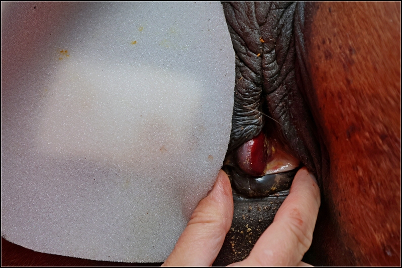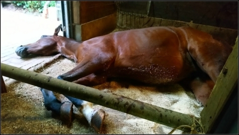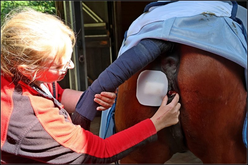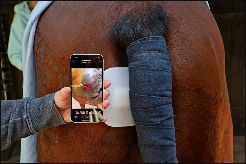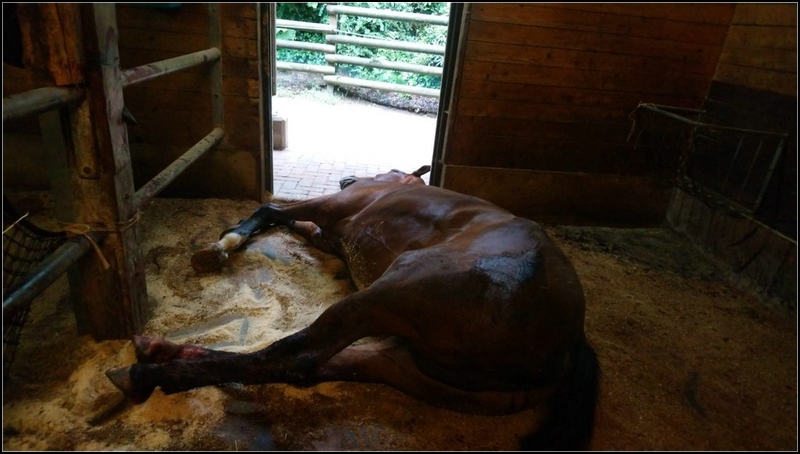 Am nächsten Morgen machten der Stallhelfer und Stefanie Ritter eine furchtbare Entdeckung: „Durch den hohen Blutverlust lag Pippa am Boden in der Box, überall war Blut verteilt, das ganze Pferd mit Blut überströmt“, berichtet Stefanie Ritter. Ihre Westfalenstute Pippa atmete zu diesem Zeitpunkt nur noch schwer, stöhnte und konnte nicht mehr aufstehen.