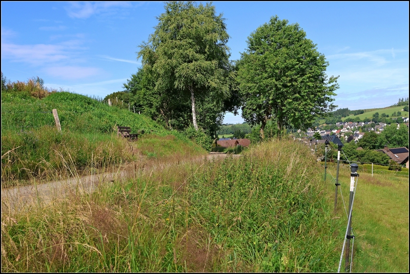 „Der Weg ist ebenfalls über Steinseifen erreichbar, wenn man am Ende der Straße links abbiegt. Der Weg führt dann zum Bauernhof von Klempner Duchardt“, erklärt Stefanie Ritter. Dieser Weg wird auf dem Foto aus Sicht von den Trampelspuren am Zaun aus in der Galerie gezeigt.