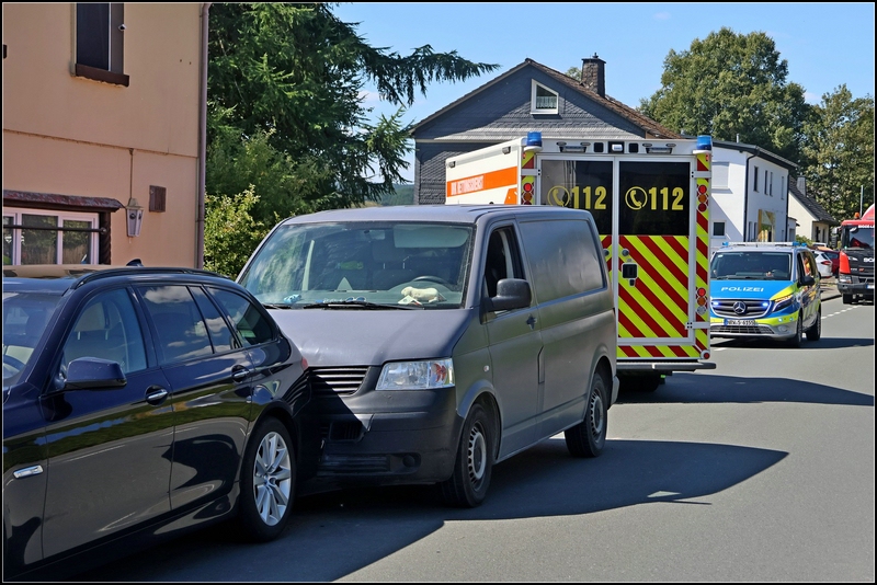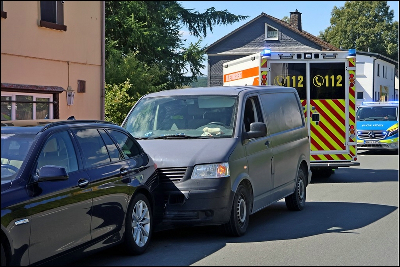 Da der BMW über eine Anhängerkupplung verfügte, verkeilte sich der VW Bus darin und konnte zunächst nicht mehr vom BMW getrennt werden. Ein Abschleppwagen mit Kran musste anrücken, um den Bus anzuheben und abschleppen zu können. Da sich der BMW dann beim Versuch, den Bus anzuheben jedoch immer mit anhob, wurde noch ein Trecker aus der Nachbarschaft zur Hilfe gezogen, womit es dann gelang, die Unfallfahrzeuge voneinander zu trennen. Der Fahrer des BMW blieb beim Unfall unverletzt. Die Fahrerin des VW Bus wurde zwar nicht verletzt, kam aber aufgrund der sehr fortgeschrittenen Schwangerschaft vorsorglich mit dem DRK Rettungsdienst ins Krankenhaus nach Bad Berleburg. Die genaue Schadenshöhe konnte noch nicht beziffert werden.