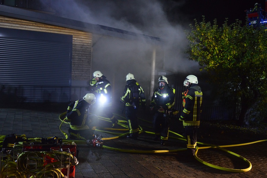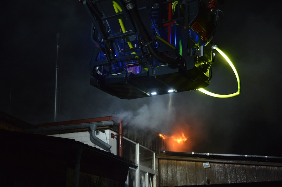 Die Feuerwehr brachte den Brand unter Kontrolle und verhinderte ein Übergreifen auf ein angrenzendes Wohnhaus. Personen wurden nicht verletzt. Der Sachschaden beläuft sich nach vorläufigen Schätzungen auf ca. 150.000 Euro.