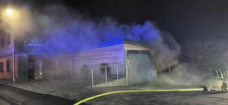 HESSISCH LICHTENAU. In einer Schreinerei mit integriertem Bestattungsunternehmen kam es zu einem Brand; Einsatzkräfte verhinderten ein Übergreifen auf ein angrenzendes Wohnhaus.