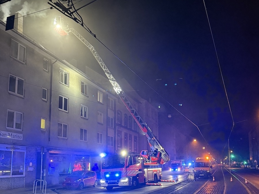 Gegen Mitternacht vom 21. auf den 22.10.2025 wurden Feuerwehr und Polizei alarmiert, nachdem Anwohner Rauch im Flur des Mehrfamilienhauses bemerkt hatten. In einem Kellerraum gerieten aus bislang unbekannter Ursache Papier und Pappe in Brand; der Rauch breitete sich vom Keller aus sowohl in das Restaurant als auch in die Flure des Wohnhauses aus. Die Bewohner hatten das Gebäude bereits vor Eintreffen der Feuerwehr verlassen; insgesamt mussten 17 Bewohner ihre Wohnungen vorübergehend verlassen. Eine Bewohnerin wurde wegen des Verdachts auf eine Rauchgasvergiftung vorsorglich mit einem Rettungswagen in ein Krankenhaus gebracht.