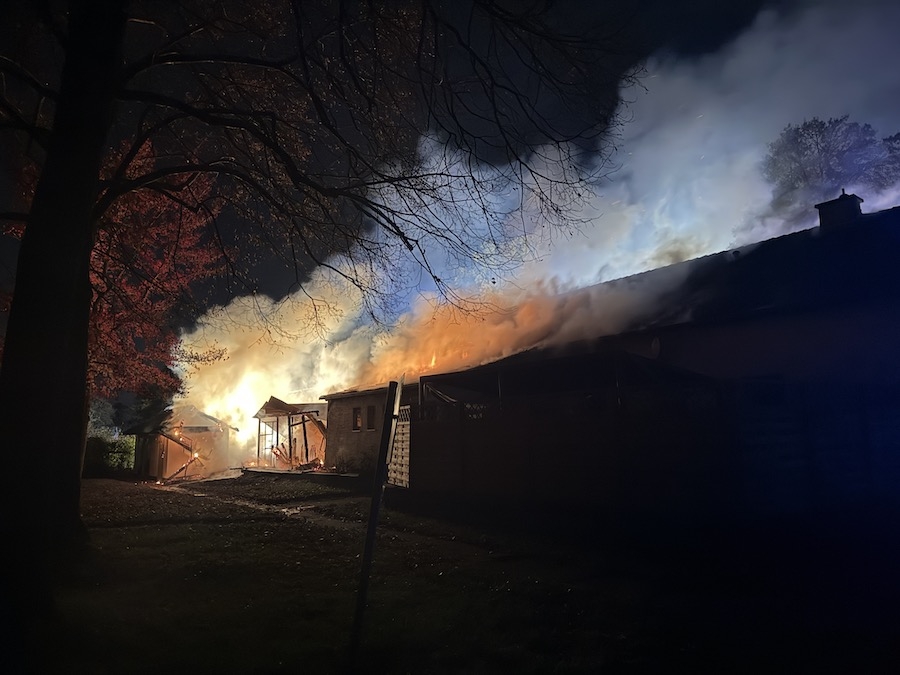 Bei Ankunft der Feuerwehr brannte ein rückwärtiger Anbau sowie ein kleineres Nebengebäude in voller Ausdehnung, und das Feuer hatte bereits auf den Veranstaltungsraum im Vereinsheim und den Dachstuhl des Gebäudes übergegriffen. Glücklicherweise befanden sich zu diesem Zeitpunkt keine Personen in dem Gebäude.