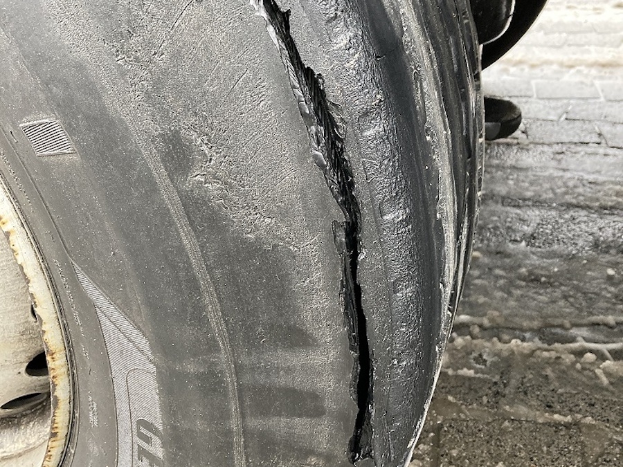 Auf dem Messeplatz in Marburg kontrollierten die Verkehrsexperten einen weiteren Sattelzug mit einem beschädigten Hinterreifen. Beim genauen Hinschauen war die darunterliegende Schicht zu sehen. Eine Untersagung der Weiterfahrt, ein Reifenwechsel sowie ein eingeleitetes Bußgeldverfahren gegen den Fahrer waren die Folge. (ots/r)
