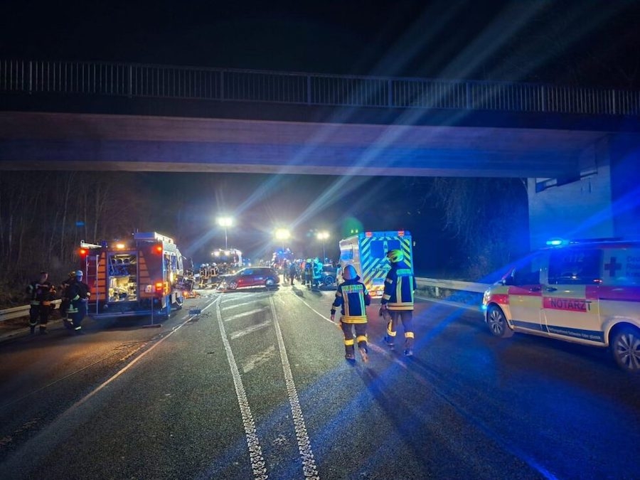 Der Notruf gegen 22.15 Uhr nach dem Unfall löste einen größeren Einsatz von Feuerwehr und Rettungsdienst aus, da gemeldet worden war, dass eine Person in einem brennenden Pkw eingeklemmt sei.