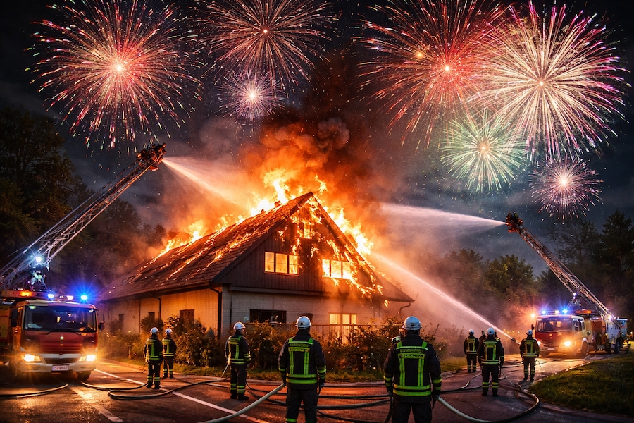 Im Zeitraum von Mittwochabend (31. Dezember), 18 Uhr, bis zum Neujahrsmorgen (1. Januar), 6 Uhr, verzeichnete die Leitstelle insgesamt 15 Einsätze mit Bezug zu den Feierlichkeiten. Überschattet wurde die Nacht von einem Feuer in Ottbergen. Kurz nach Mitternacht geriet dort ein Dachstuhl in Brand. Während der Löscharbeiten musste die Ortsdurchfahrt komplett gesperrt werden. Zwar blieben die Bewohner unverletzt, am Gebäude entstand jedoch erheblicher Sachschaden. Die Polizei ermittelt nun zur Brandursache und bittet Zeugen, sich unter der Telefonnummer 05271/9620 zu melden.