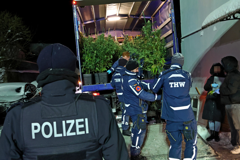 Die Polizei hatte im Anschluss zunächst den Keller und dann die Haustür des Gebäudes aufgebrochen. Alle Räume im Haus waren voll mit Cannabispflanzen und entsprechenden technischen Einrichtungen, um die Pflanzen anbauen und groß werden lassen zu können. Außerdem gab es eine größere Menge an Setzlingen im Gebäude. Kräfte der Kriminalpolizei aus Bad Berleburg und Siegen nahmen den Tatort auf und erfassten alle illegalen Pflanzen und Einrichtungen. Um die große Menge an Cannabis zeitnah abtransportieren und vernünftig arbeiten zu können, wurde das THW Bad Berleburg zur Unterstützung gerufen.
