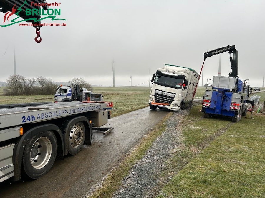 Schwierig gestaltete sich die Bergung des Lastkraftwagens aufgrund des schmalen Weges und stark durchnässter Wiesen. Die Feuerwehr unterstützte zudem bei der Bergung der Zugmaschine, in der sich weitere 80 lebende Schweine befanden. Abschließend wurde die Straße gereinigt und kontaminierte Schutzkleidung ausgetauscht. Gegen 16.47 Uhr endete die Tätigkeit für die insgesamt 20 Kräfte der Feuerwehr. Angaben zur Schadenshöhe oder zur Ursache liegen derzeit nicht vor.