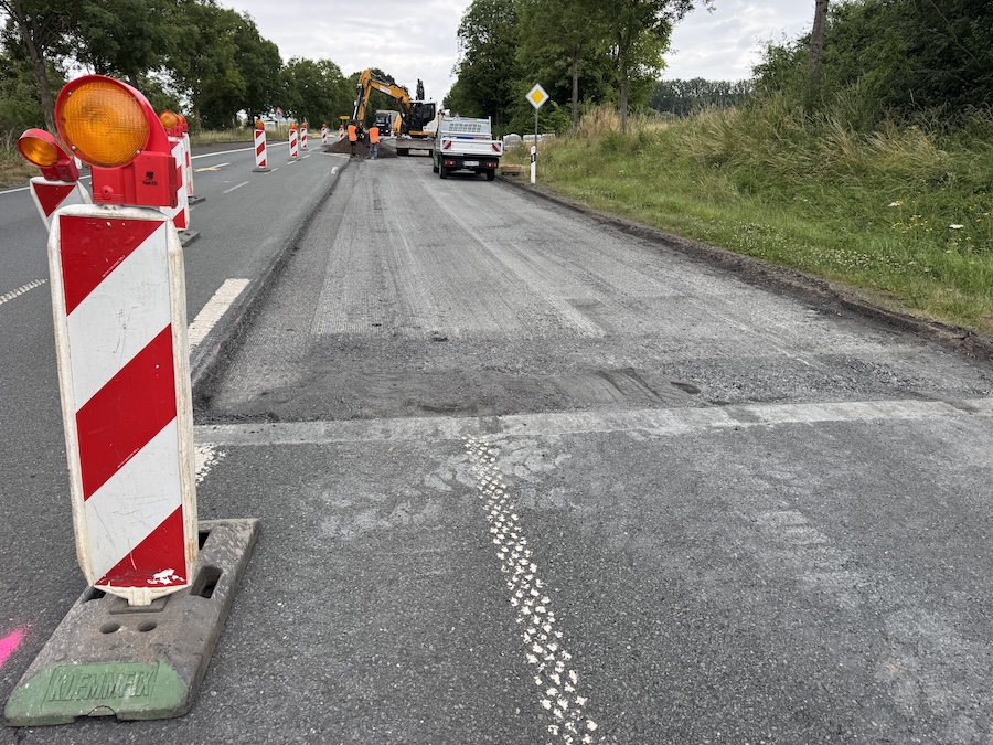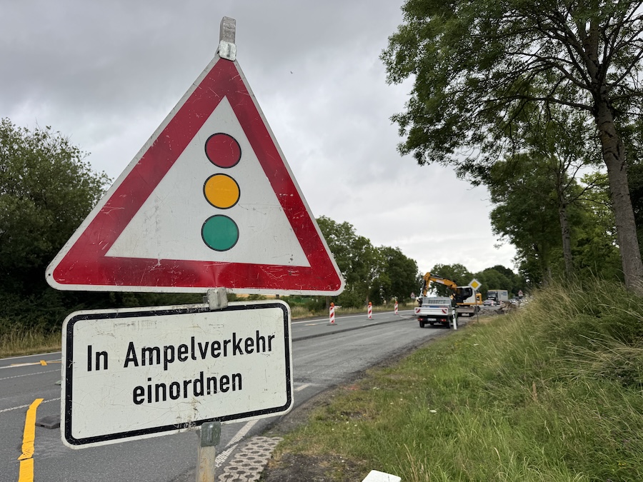 Aktuell sorgt die Baustelle für Verkehrsbehinderungen, da die betroffene Straße durch eine Ampelanlage geregelt und nur einseitig befahrbar ist. Nach Angaben von Baustellenarbeitern sollen die Arbeiten bis zum Ende der Sommerferien, also bis zum 15. August, abgeschlossen sein. Ein Arbeiter erklärte, dass bewusst in den Sommerferien gearbeitet werde, da in dieser Zeit keine Schulbusse fahren und somit weniger Verkehr herrscht.