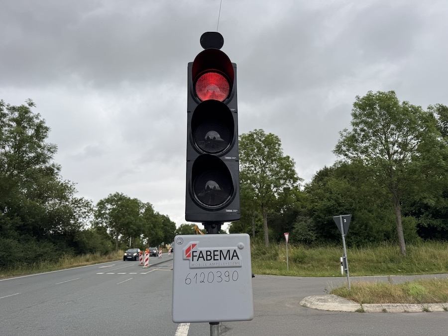 Während der Maßnahme ist die Strecke halbseitig gesperrt; eine Ampelanlage regelt den Verkehr.