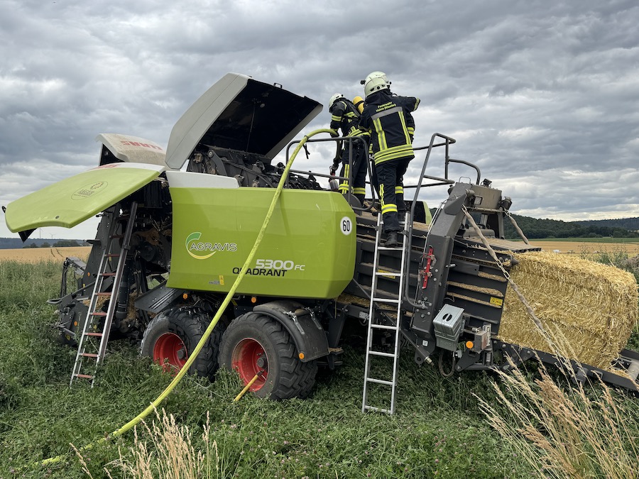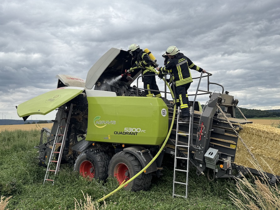 Am Donnerstag, 10. Juli, gegen 16.34 Uhr wurde der Brand einer Ballenpresse auf einem Feld entlang der L 3077 zwischen Haina und Sehlen gemeldet. Beim Eintreffen der Feuerwehr bestätigte sich die Lage: Die Ballenpresse war während der Feldarbeit in Brand geraten.