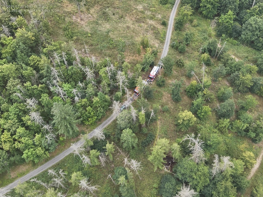 Die Arbeiten wurden mit zwei Wärmebildkameras überwacht – zusätzlich kam eine Drohne zur Lageerkundung aus der Luft zum Einsatz. Zur Sicherstellung der Löschwasserversorgung standen zwei Tanklöschfahrzeuge (TLF 4000 und TLF 16/24) sowie ein Staffellöschfahrzeug bereit.