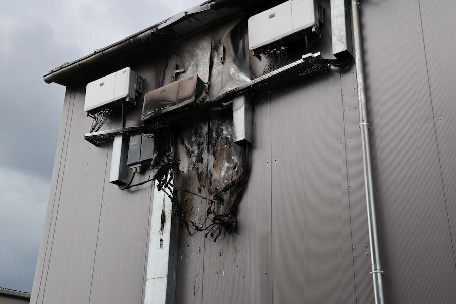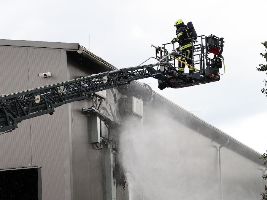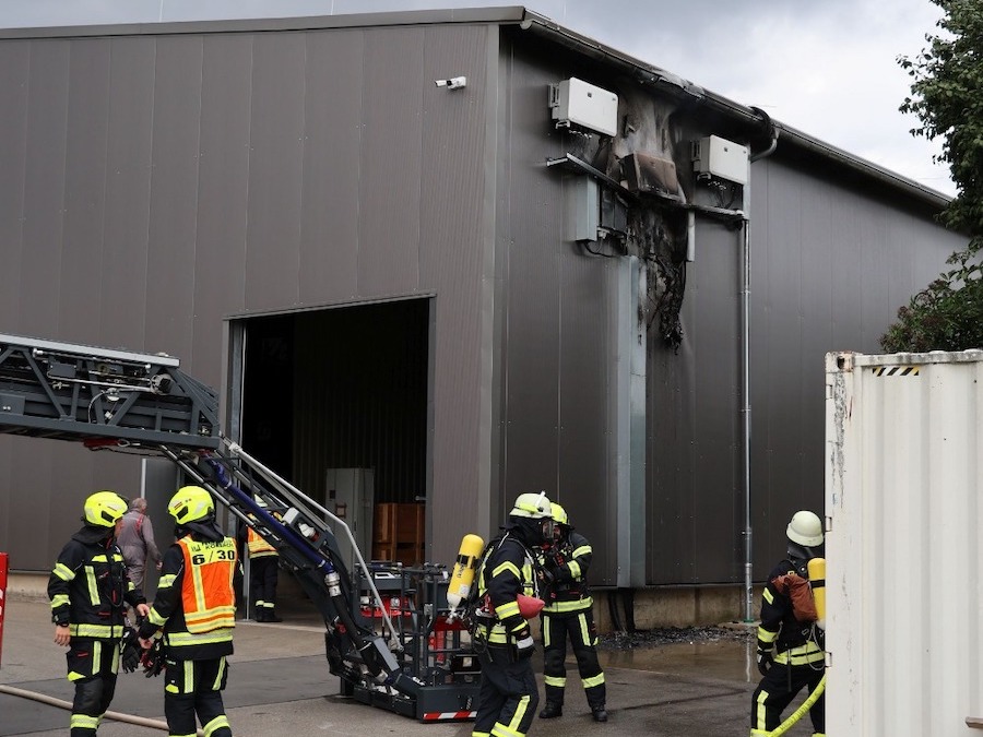 Unter der Leitung von Stadtbrandinspektor Peter Bochon wurde der Wechselrichter an der Fassade gelöscht und die Halle gelüftet. Die Brandursache war vermutlich ein technischer Defekt.