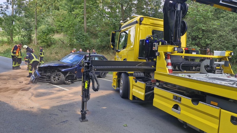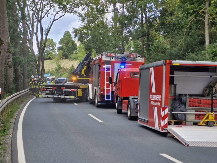 Die Feuerwehr Sachsenhausen wurde um 14.13 Uhr nachalarmiert, da größere Mengen Betriebsstoffe ausgelaufen waren. Unter der Einsatzleitung von Dirk Müller beseitigten die Einsatzkräfte Trümmerteile und streuten die betroffenen Flächen mit Ölbindemittel ab. Das kontaminierte Material wurde anschließend mit dem Abrollbehälter „Technische Hilfe“ entsorgt. Nachdem die beiden Unfallfahrzeuge verladen waren, gab die Polizei die zuvor voll gesperrte Bundesstraße wieder frei.