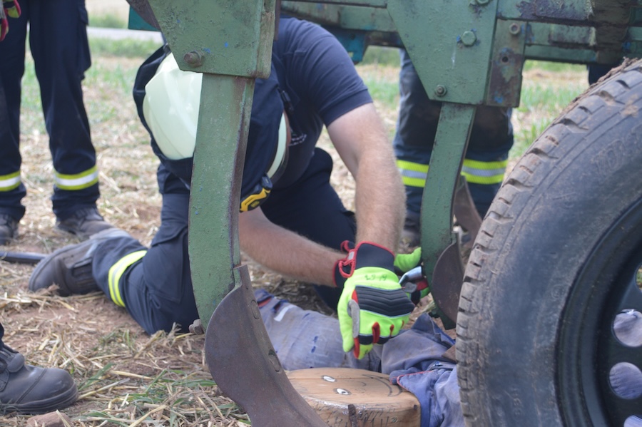 Person unter landwirtschaftlichem Gerät eingeklemmt