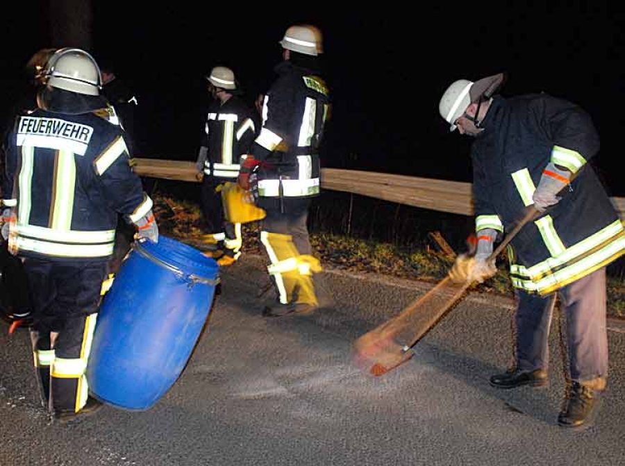 MARSBERG. Ausgelaufener Kraftstoff sorgt für Sperrung. Durch eine Beschädigung am Kraftstofftank hat ein LKW Diesel über eine Strecke von ca. 10 Kilometern verloren.