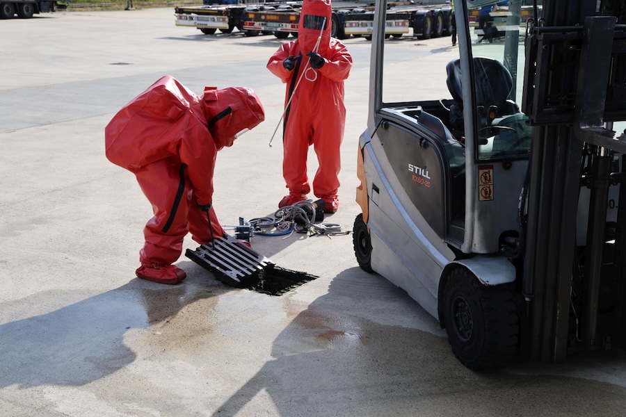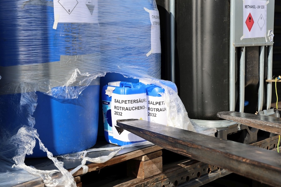 Zunächst stand die Rettung des Verletzten im Fokus. Unter Atemschutz brachten Einsatzkräfte den Mann zügig aus dem Gefahrenbereich. Es folgten Absicherung der Einsatzstelle und Lageerkundung. Mehrere Trupps in Vollschutz gingen vor, dichteten Kanaleinläufe ab und verhinderten eine Ausbreitung der Stoffe. Der havarierte Behälter wurde anschließend gesichert und für den Abtransport vorbereitet.