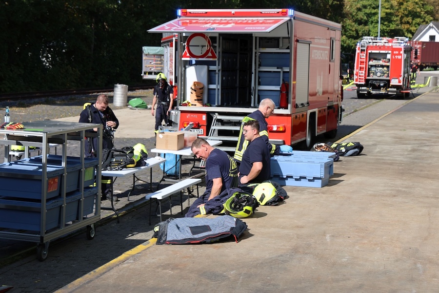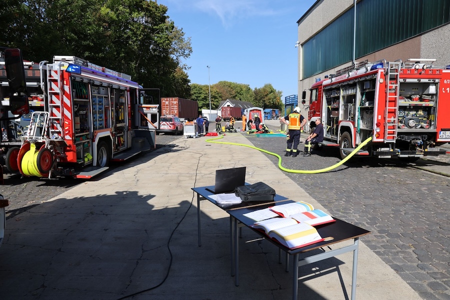 Als Übungsbeobachter fungierten Andre Casper, Wehrführer der Kernstadtwehr, und Carsten Vahland, Stadtbrandinspektor. Beide zollten den Kräften großen Respekt für die Übernahme der Spezialaufgaben. Die Schwerpunkte der Übung wurden im Nachgang gemeinsam besprochen. Ein Dank gilt der beteiligten Spedition für die Bereitstellung des Geländes und die Unterstützung bei der Vorbereitung.