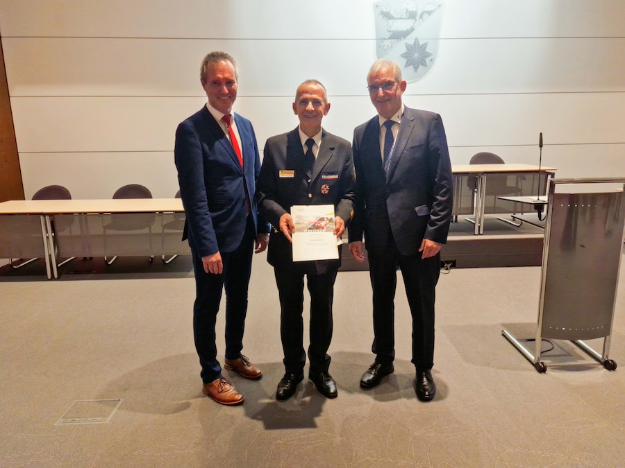 KORBACH. Im Kreistagssitzungssaal des Kreishauses wurde das 25-jährige Dienstjubiläum von Kreisbrandinspektor Gerhard Biederbick gewürdigt; zahlreiche Gäste aus Feuerwehr, Regierungspräsidium und Politik hoben seinen Einsatz für Brand- und Katastrophenschutz hervor.