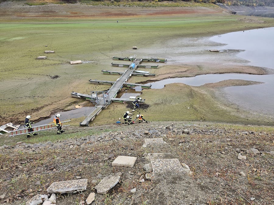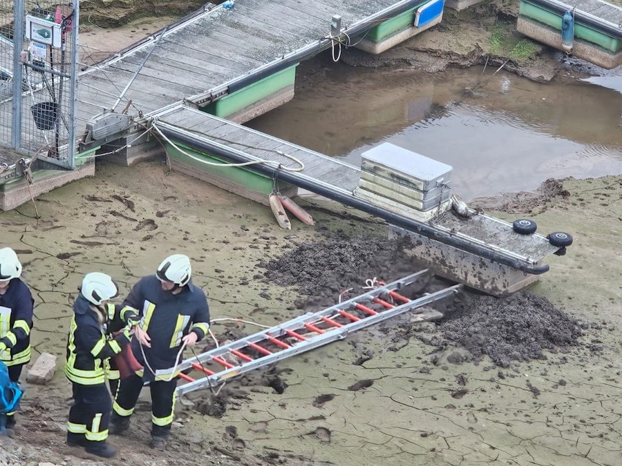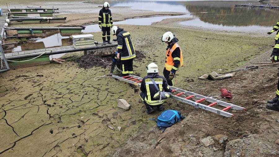 WALDECK. Im Stauraum des Edersees sank eine Person bis zur Hüfte im Schlamm ein; Einsatzkräfte befreiten sie und übergaben sie an den Rettungsdienst.