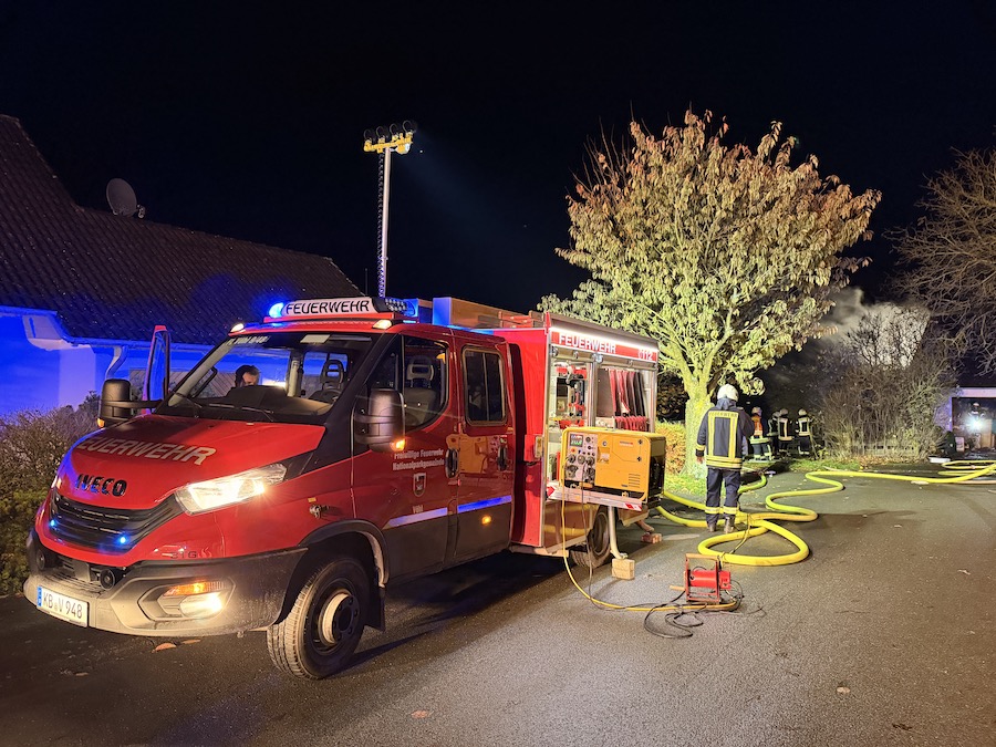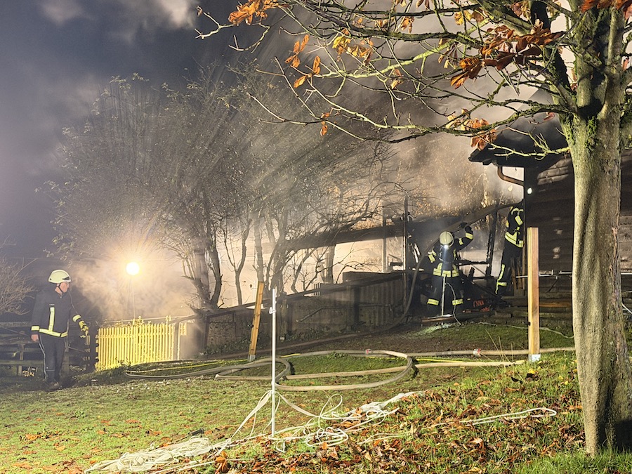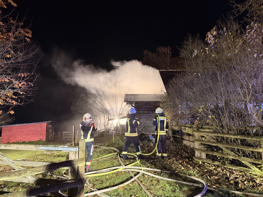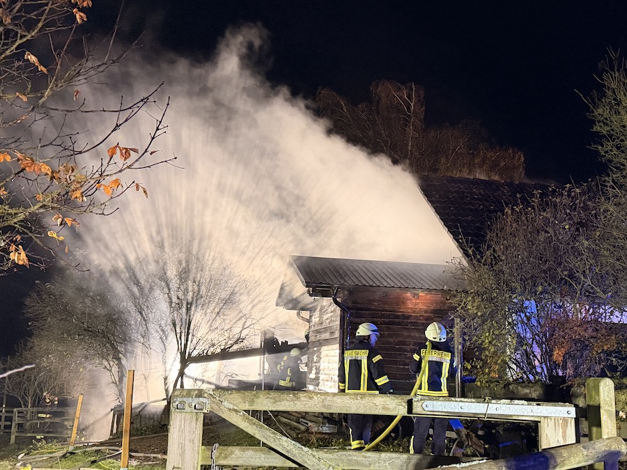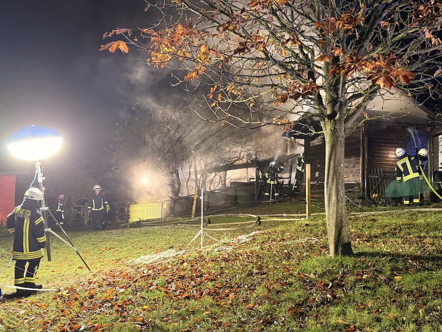 Am 1. November um 22.53 Uhr löste die Leitstelle Alarm mit dem Stichwort „F 3 – Brand Scheune“ aus. Für die letzten Kräfte endete der Einsatz gegen 3 Uhr. Beim Eintreffen stand der Stall in Vollbrand, Tiere befanden sich keine im Gebäude.