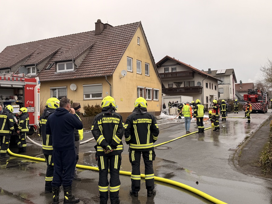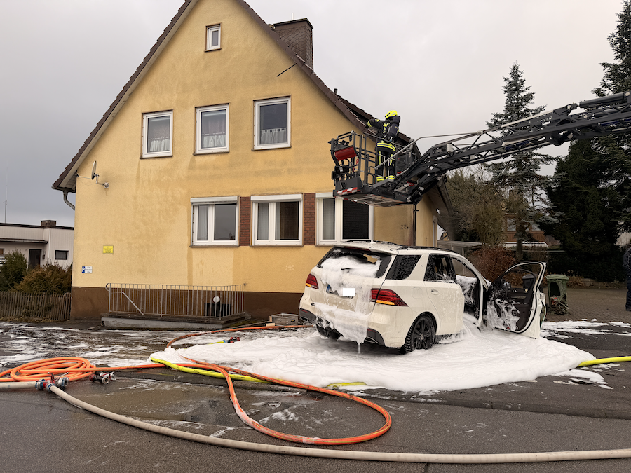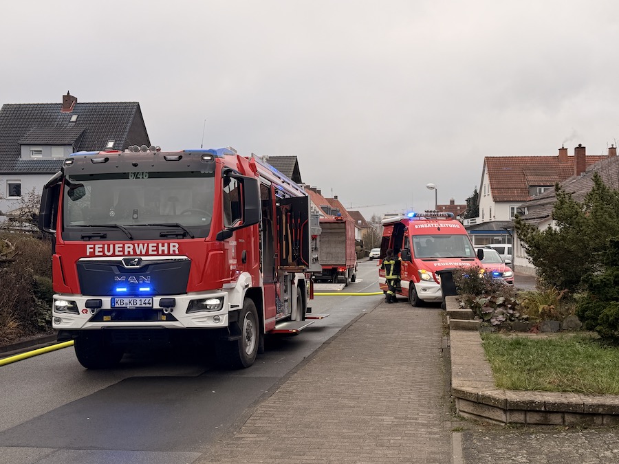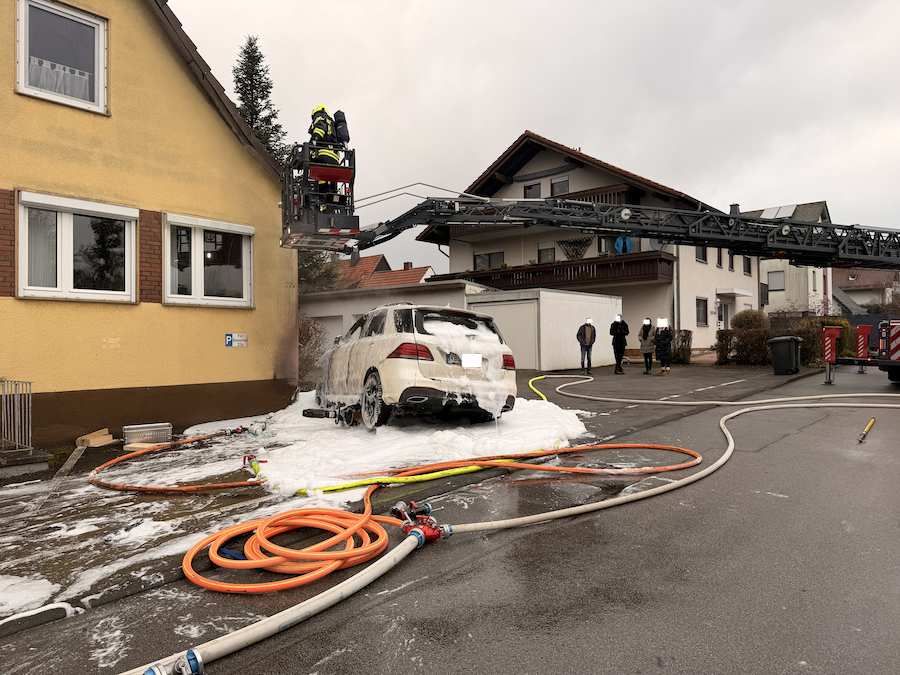 KORBACH. Vor einem Wohngebäude ist ein Personenkraftwagen in Brand geraten; Flammen schlugen bereits auf Fassade und Dachüberstand über. Im Verlauf des Mittwochvormittags, 26. November, erfolgte kurz vor 9 Uhr die Alarmierung des Löschzuges der Kernstadt Korbach, gemeldet war ein Personenkraftwagenbrand direkt am Gebäude. Aufgrund einer ersten Rückmeldung des Rettungsdienstes wurden direkt weitere Kräfte nachalarmiert, da sich noch Personen im betroffenen Gebäude befanden. Neben der Kernstadtwehr wurden somit auch die Atemschutznotfallteams aus Nordenbeck und Lelbach alarmiert.