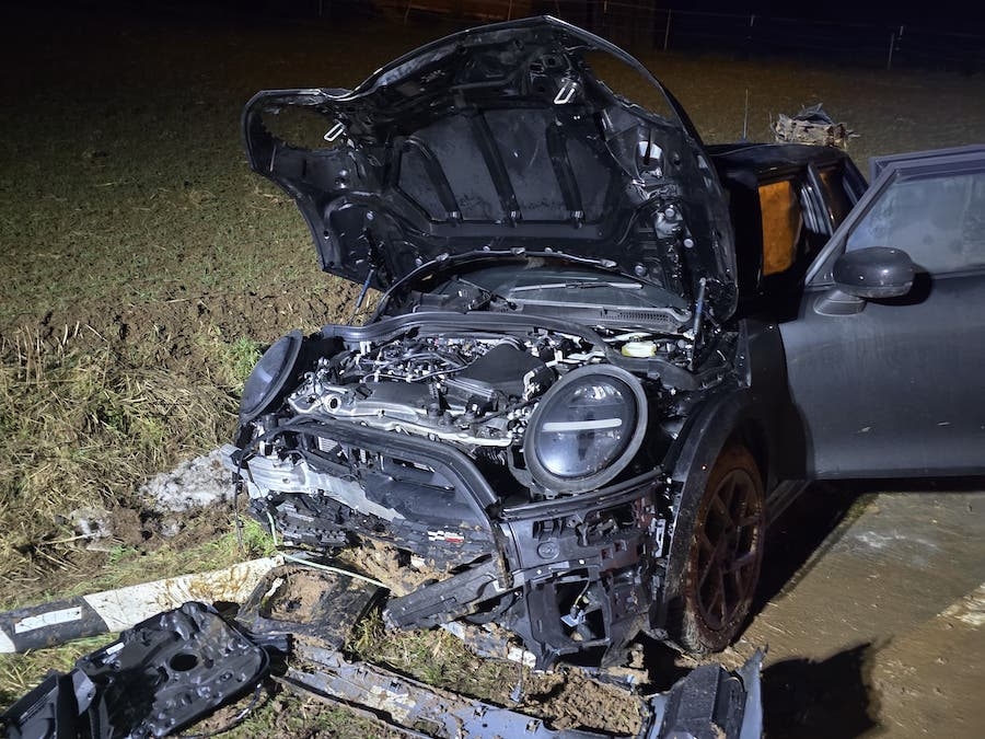 Die Einsatzkräfte wurden am Sonntag durch ein automatisches E-Call-System zu der Unfallstelle an der Strecke in Fahrtrichtung Höringhausen gerufen. In einer Linkskurve hatte der Fahrer eines keine vier Wochen alten Mini Coopers die Kontrolle verloren und war nach rechts von der Fahrbahn abgekommen. Dort riss der Mietwagen zunächst einen Leitpfosten aus dem Boden, bevor er frontal gegen einen hölzernen Strommasten prallte und diesen vollständig durchtrennte.