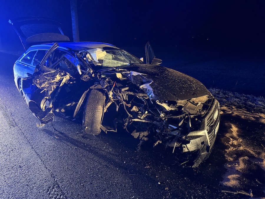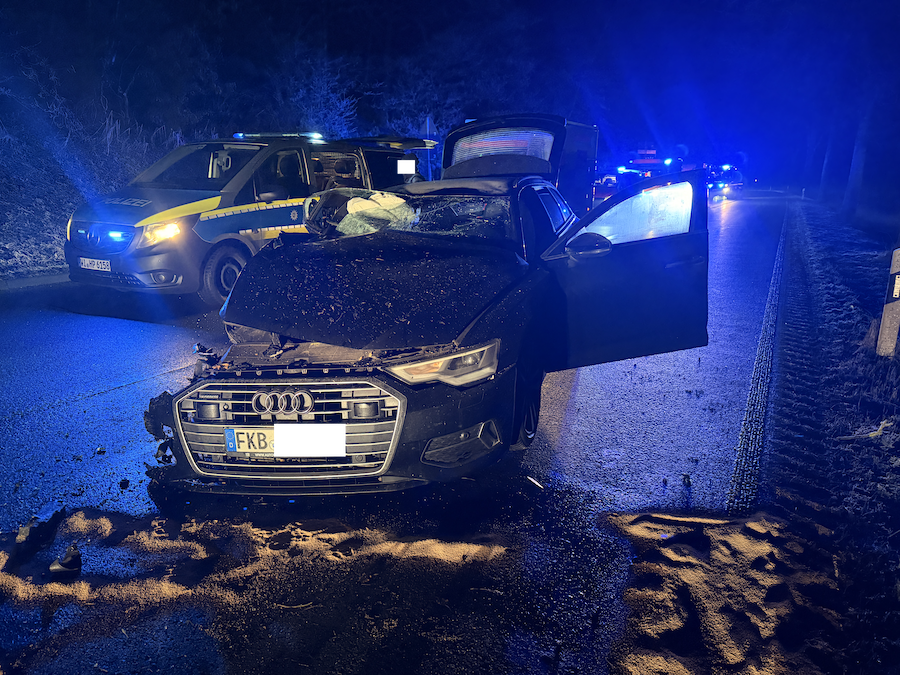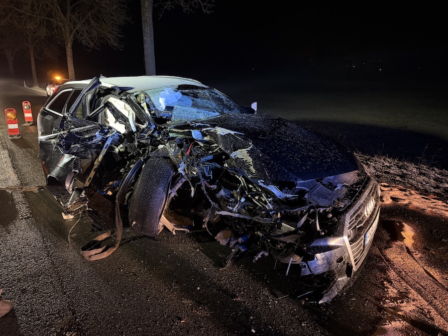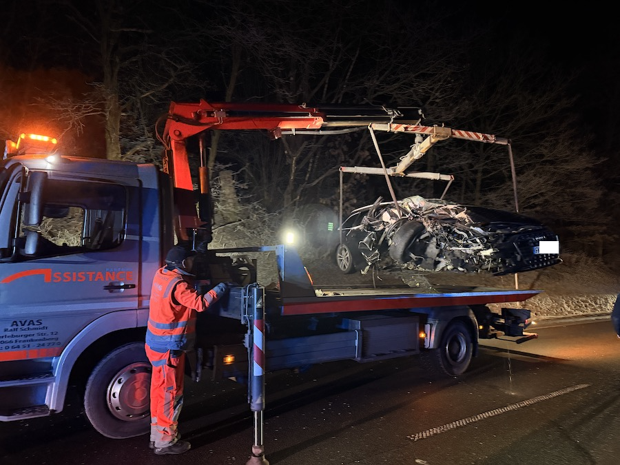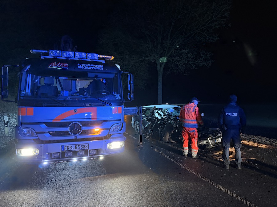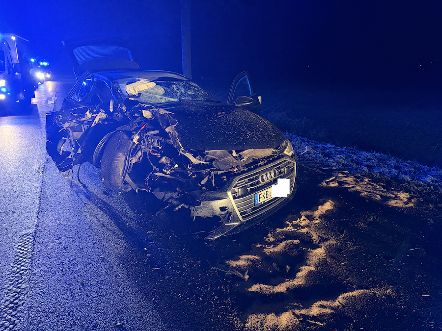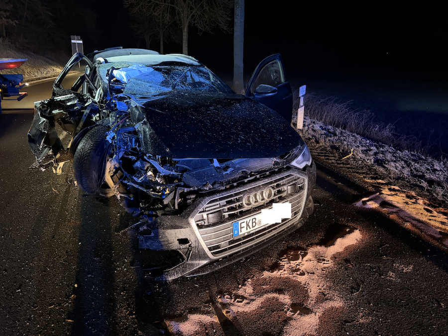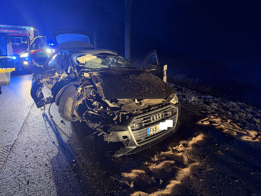 Ein 52-jähriger Mann aus Frankenberg war am Montag gegen 22.20 Uhr mit seinem schwarzen Audi A6 Quattro aus Richtung Korbach kommend unterwegs. Hinter der Ampel im Bereich der Kläranlage verlor er aus bislang ungeklärter Ursache die Kontrolle über sein Fahrzeug, prallte mit der linken Fahrzeugseite massiv gegen einen Baum und kam nach einer halben Drehung um die eigene Achse schließlich zum Stehen. Sowohl der Fahrer als auch sein 29-jähriger Beifahrer erlitten bei der Kollision Verletzungen.