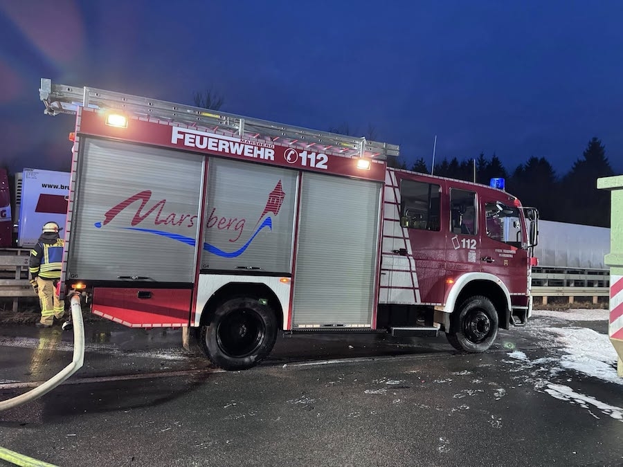 Hinzugezogen wurden nach der ersten Alarmierung um 01.45 Uhr zunächst Feuerwehren aus dem Stadtgebiet Warburg, da der brennende Lkw in Fahrtrichtung Kassel gemeldet worden war. Einheiten der Feuerwehr Marsberg folgten um 02.15 Uhr mit der Alarmierung in Fahrtrichtung Kassel, um die Brandbekämpfung und Absicherung zu unterstützen.