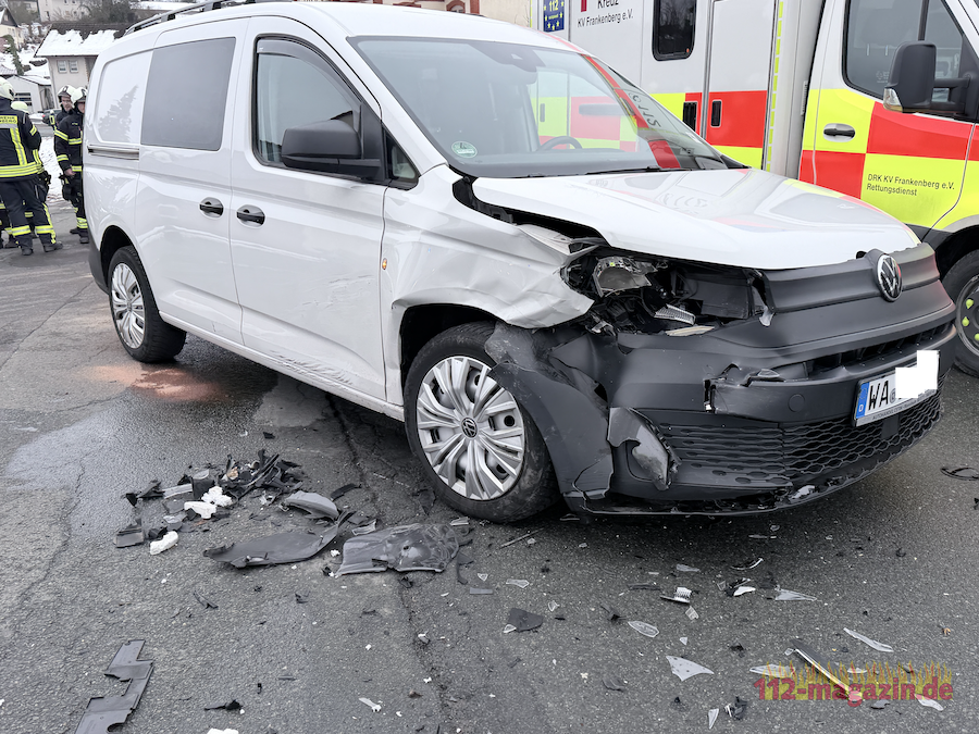 Eine 16-jährige Beifahrerin im Mazda erlitt leichte Verletzungen und wurde zur weiteren Behandlung in das Frankenberger Krankenhaus gebracht. In Bezug auf den 57-jährigen Fahrer des VW Caddy aus Battenberg konnte nach einer Untersuchung im Rettungswagen Entwarnung gegeben werden; er wurde nach einem Gesundheitscheck wieder entlassen. An beiden Fahrzeugen entstanden Sachschäden in Höhe von jeweils 10.000 Euro.