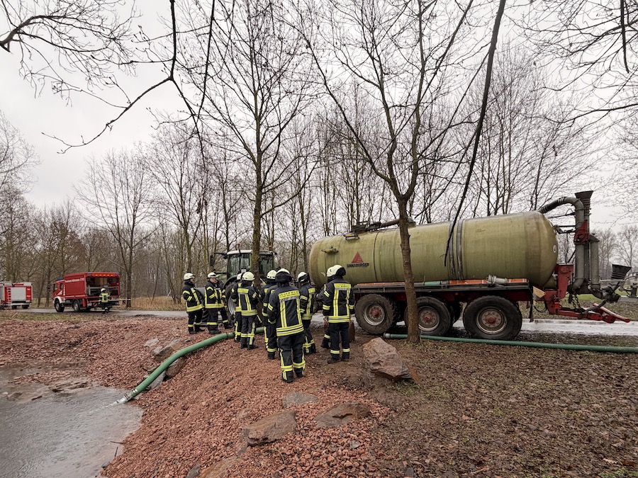 Im zweiten Teil stand die Praxis im Vordergrund. In mehreren Einsatzräumen im Stadtgebiet überprüften die Teams Wasserentnahmestellen, Fahrwege sowie Möglichkeiten der Löschwasserförderung. Trotz nicht optimaler Wetterbedingungen konnten dabei wertvolle Erkenntnisse gewonnen werden. Zudem erfolgte eine Einweisung in neue Einsatzmittel, insbesondere in den Husky-Gerüstfaltbehälter sowie die dazugehörigen Armaturen.