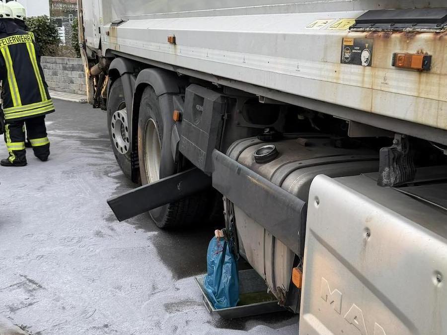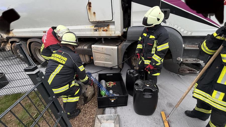 Um 6.24 Uhr am Freitagmorgen wurde der Schaden festgestellt. Aus dem defekten Behälter liefen etwa 200 Liter Diesel auf die Fahrbahn und in die örtliche Kanalisation. Einsatzkräfte der Feuerwehr Affoldern reagierten unmittelbar und trieben geistesgegenwärtig einen Holzkeil in den defekten Tank, um den weiteren Austritt zu stoppen.