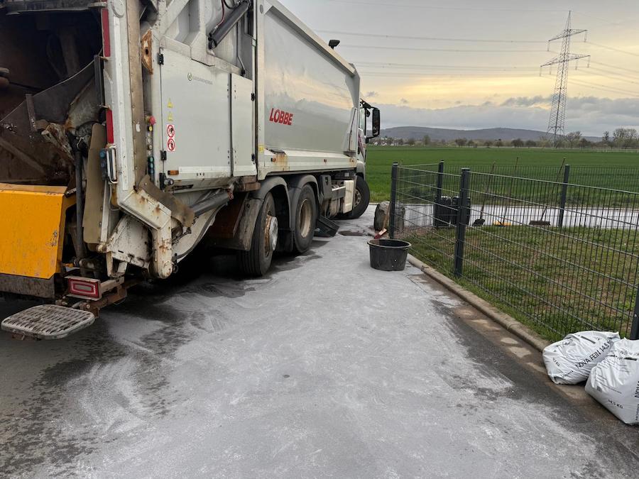 EDERTAL. Ein aufgerissener Dieseltank an einem Müllfahrzeug hat in Affoldern umfangreiche Maßnahmen zur Folge gehabt. Beim Abbiegen in die Buhlener Straße holte der MAN nach rechts aus, wobei der Tank beschädigt wurde und Kraftstoff austrat.