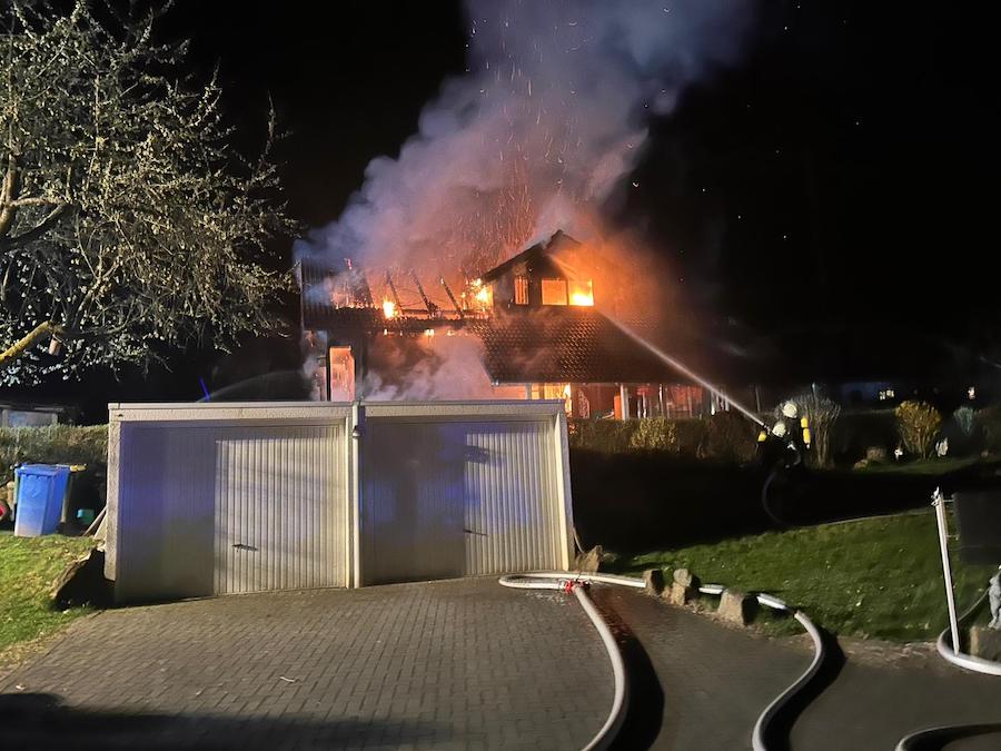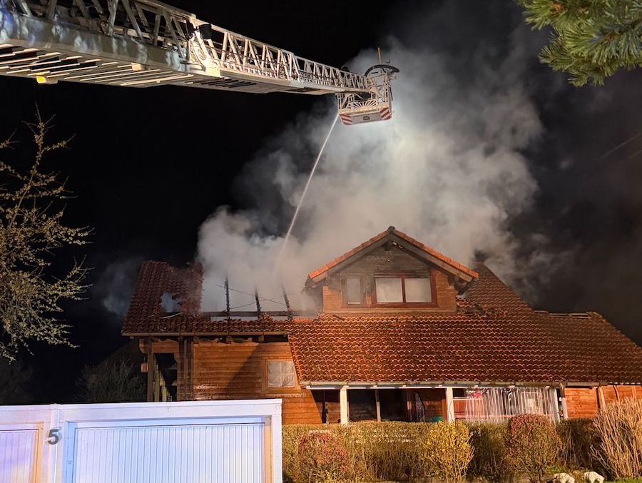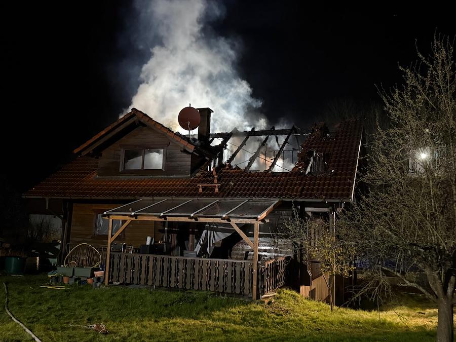 Gegen 22.11 Uhr wurde das Feuer am Freitag, 10. April, über Notruf gemeldet, woraufhin um 22.20 Uhr weitere Einheiten alarmiert wurden. Beim Eintreffen der ersten Wehren standen das Dachgeschoss und der Dachstuhl bereits in vollem Umfang in Flammen. Personen befanden sich glücklicherweise nicht im Gebäude, verletzt wurde niemand.