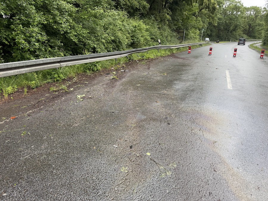 Zum Einsatz kamen eine Streife der Polizei sowie die Feuerwehr, die ausgelaufene Betriebsstoffe abstreute.