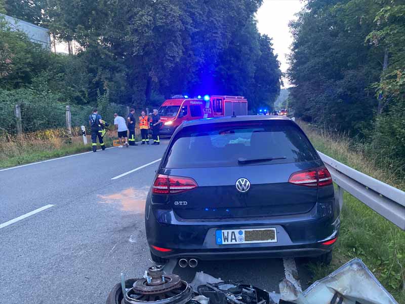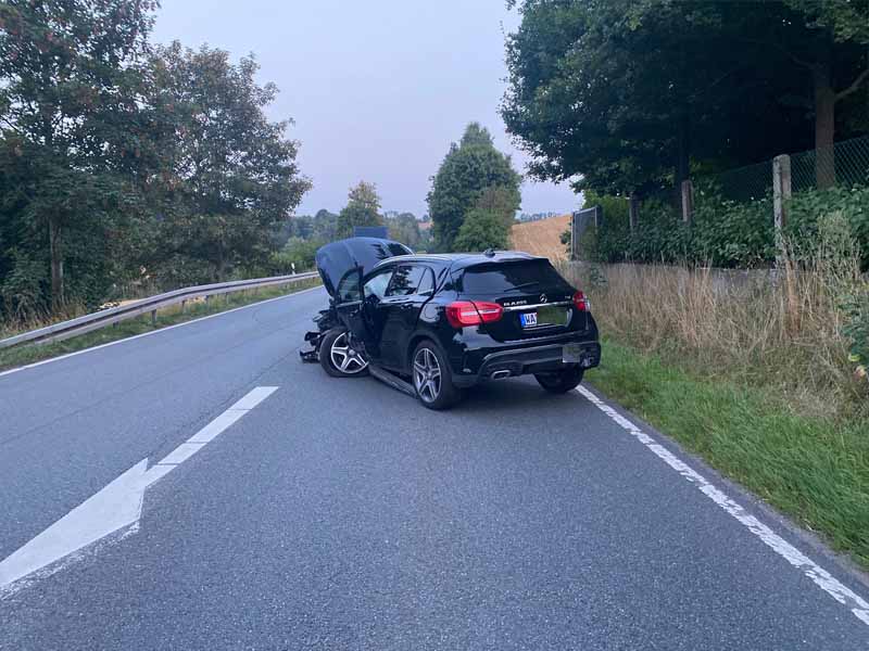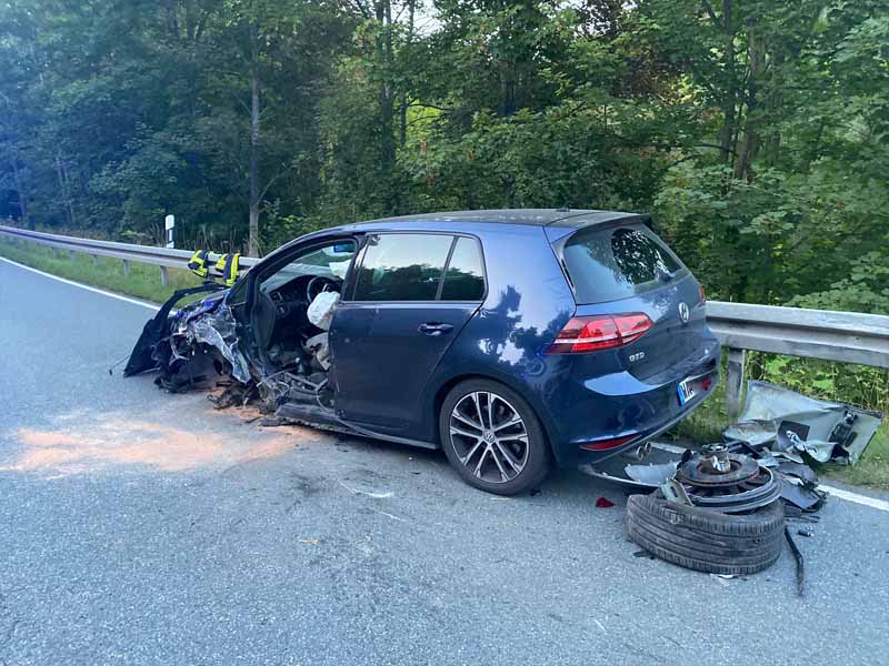 Nach Angaben von Zeugen an der Unfallstelle kam der schwarze Mercedes-Benz aus Richtung Netze und war auf dem Weg in Richtung Buhlen. In Höhe des Mauerwerkes setzte der Fahrer, ein 49-Jähriger aus Bad Arolsen, zum Überholen an. Zunächst gelang es dem Arolser einen PKW zu überholen, darüber hinaus wollte er an einem MAN mit Anhänger vorbeiziehen. Unglücklicherweise kam aus Richtung Buhlen ein blauer Volkswagen entgegen, der mit dem Fahrer (26) und einer Beifahrerin besetzt war. Reflexartig versuchte der Korbacher seinen Golf nach rechts zu steuern, wurde aber von der Leitplanke daran gehindert. Es kam zum Zusammenstoß der beiden Fahrzeuge, wobei der Mercedes zusätzlich in die linke Seite des LKWs gedrückt wurde.