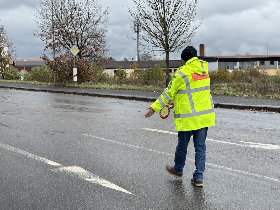 Für eine besondere Situation sorgte ein Verkehrsteilnehmer, der versuchte, die Kontrollstelle zu umgehen und kurz vor der Kontrolle wendete. Ein ziviles Polizeifahrzeug (Audi A6) nahm mit Blaulicht und Martinshorn die Verfolgung auf und konnte den Fahrer nach kurzer Flucht stellen. Die Kontrolle ergab eine Beeinflussung durch Drogen; gegen den Mann wurden entsprechende Maßnahmen eingeleitet.