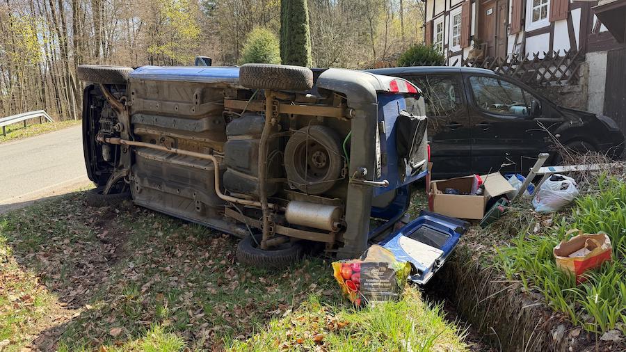 Am Samstag gegen 11.25 Uhr war ein 28 Jahre alter Mann aus Korbach mit einem blauen Fiat von Nordenbeck in Richtung Goddelsheim unterwegs, als das Fahrzeug in einer scharfen Kurve auf die Bankette geriet. Der Fahrer übersteuerte daraufhin, woraufhin sich der Pkw auf die Seite legte und gegen einen geparkten Citroën rutschte.