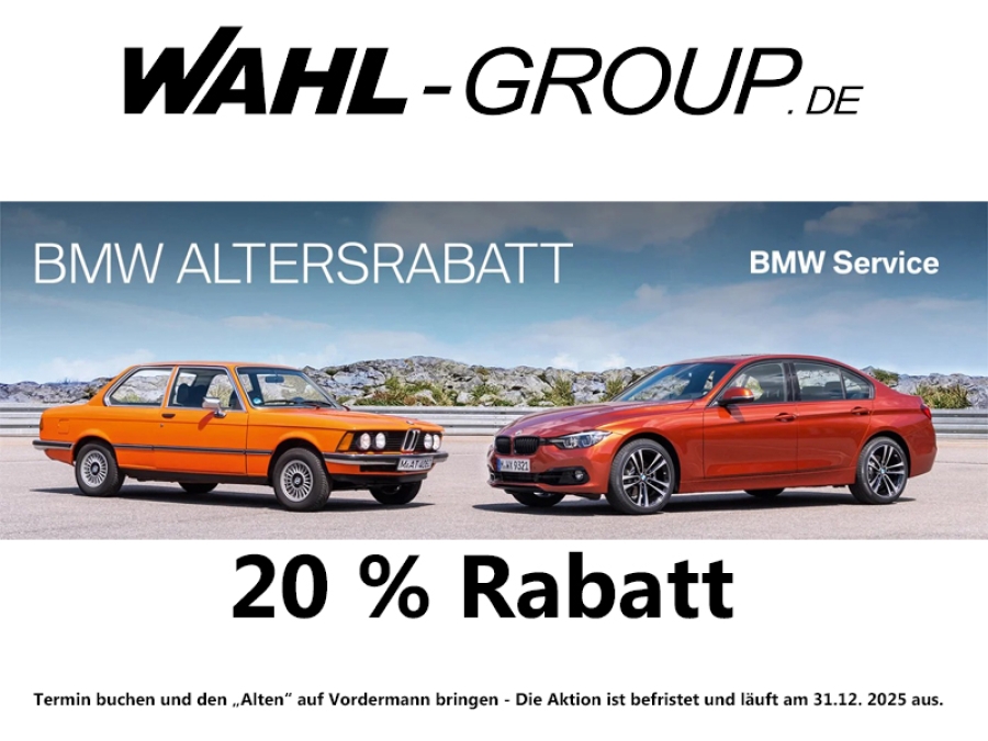 KORBACH. (Rabattanzeige) Die WAHL-Group gibt nicht nur Gas im Bereich des Neu- und Gebrauchtwagensektors. Ab sofort bieten die BMW-Center in Korbach, Frankenberg und Brilon einen Altersrabatt von 20 % für alle BMW-Fahrzeuge, die älter als 5 Jahre sind an.