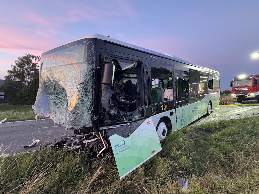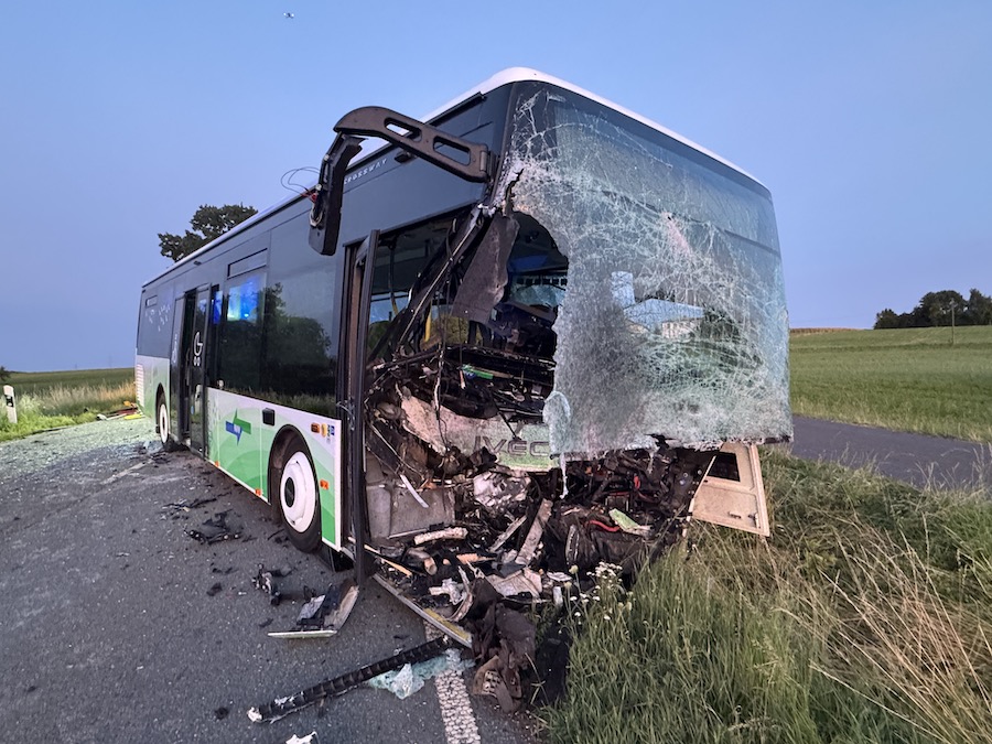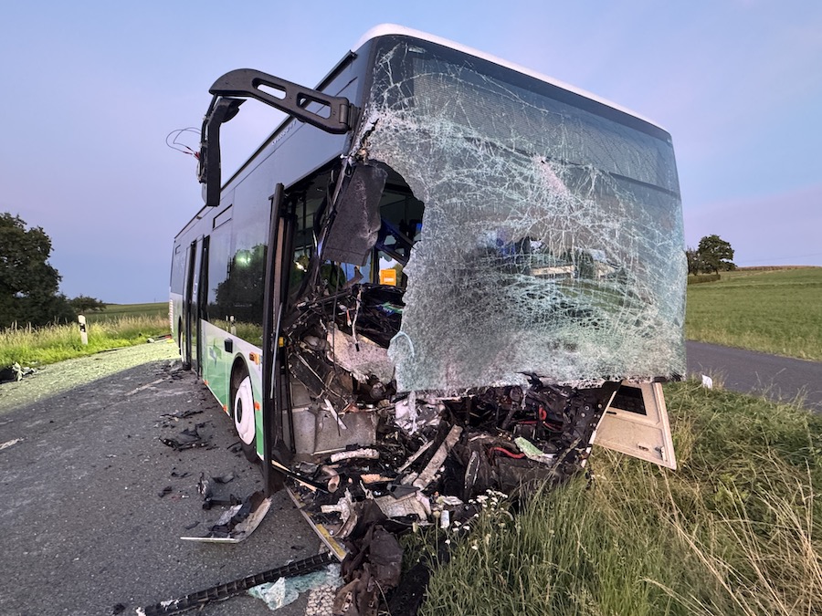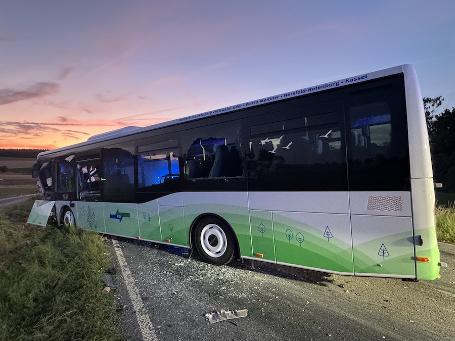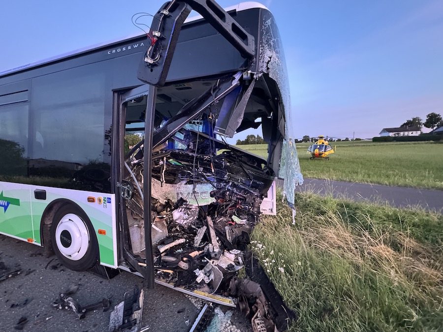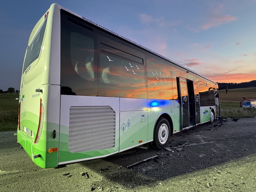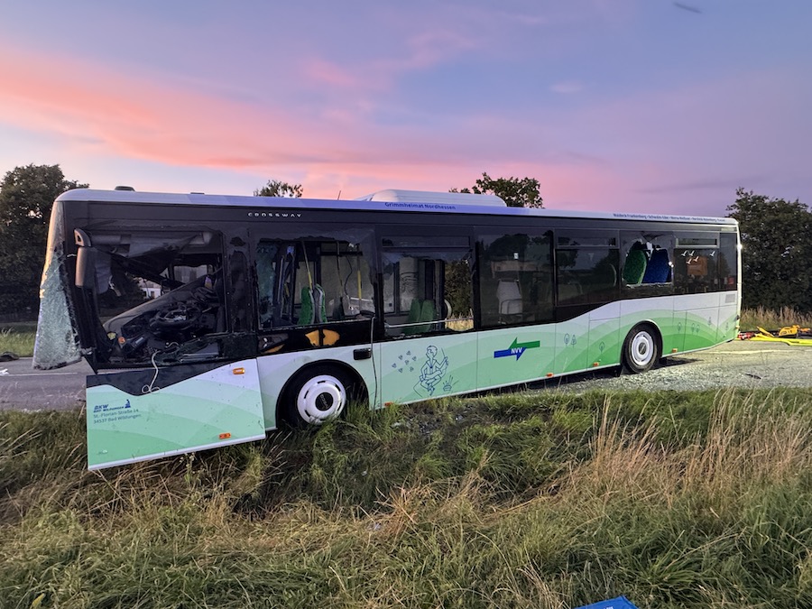 Der 50-jährige Fahrer des Toyota war allein unterwegs. Im Ortseingangsbereich von Altwildungen verlor er offenbar die Kontrolle über sein Fahrzeug. Durch den Aufprall wurden der Fahrer des Toyota, der 28-jährige Busfahrer sowie eine 18-jährige Insassin des Busses schwer verletzt. Die schwer verletzte Frau, die direkt hinter dem Busfahrer gesessen hatte, war im Fahrzeug eingeklemmt und wurde mit hydraulischen Rettungsgeräten von der Feuerwehr befreit. Alle drei Schwerverletzten wurden per Rettungshubschrauber in umliegende Kliniken geflogen. Fünf weitere Businsassen erlitten leichte Verletzungen.