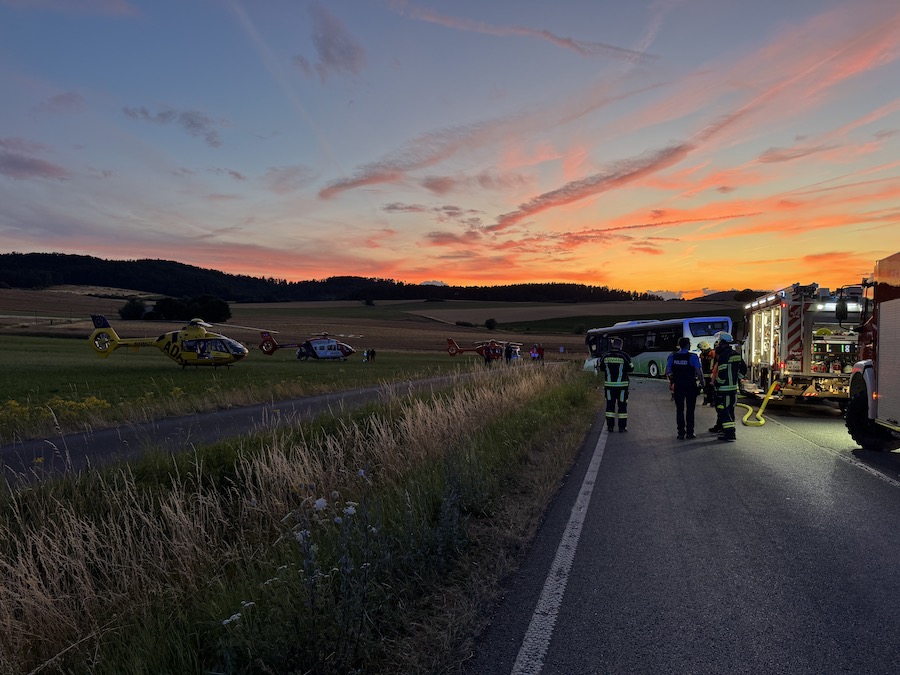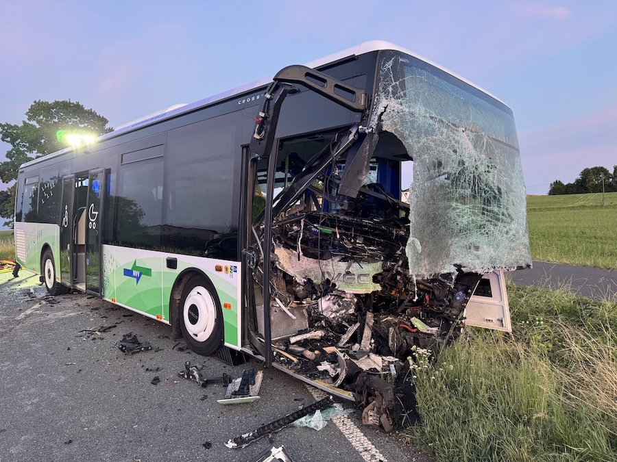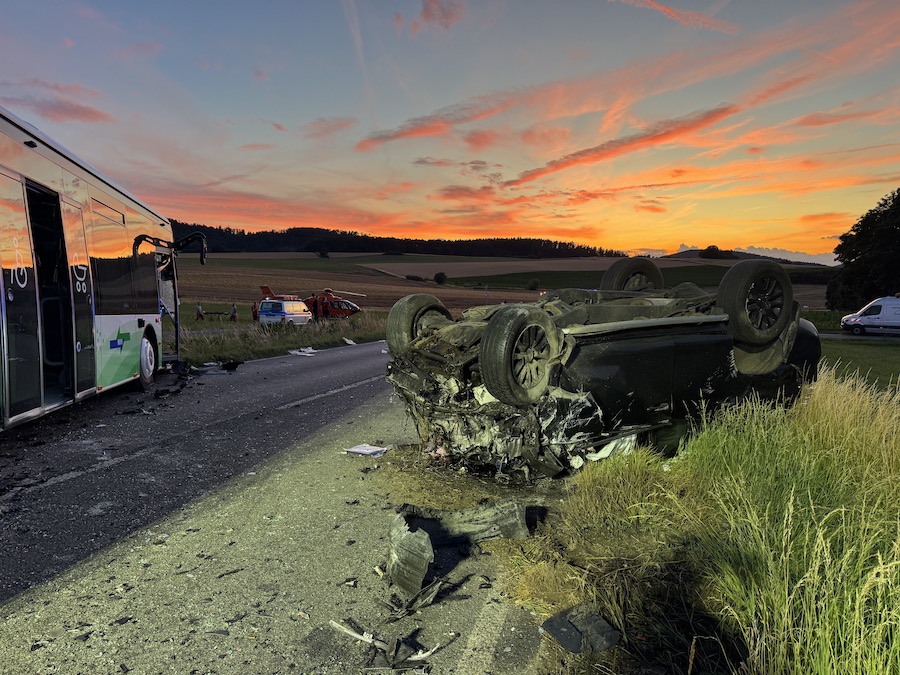 Wie die Polizei gegenüber 112-Magazin berichtet, war ein Toyota Land Cruiser aus bislang ungeklärter Ursache in den Gegenverkehr geraten und frontal mit einem entgegenkommenden Linienbus kollidiert.