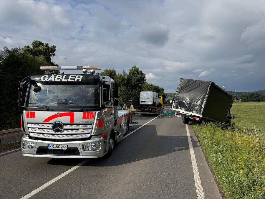 Ein 30-jähriger Ukrainer befuhr mit einem in Polen zugelassenen Mercedes-Sprinter die Bundesstraße aus Richtung Berndorf kommend in Fahrtrichtung Twiste. Vor ihm musste ein Pkw verkehrsbedingt anhalten. Um eine Kollision zu vermeiden, wich der Fahrer nach rechts aus und lenkte das Fahrzeug in den Straßengraben.