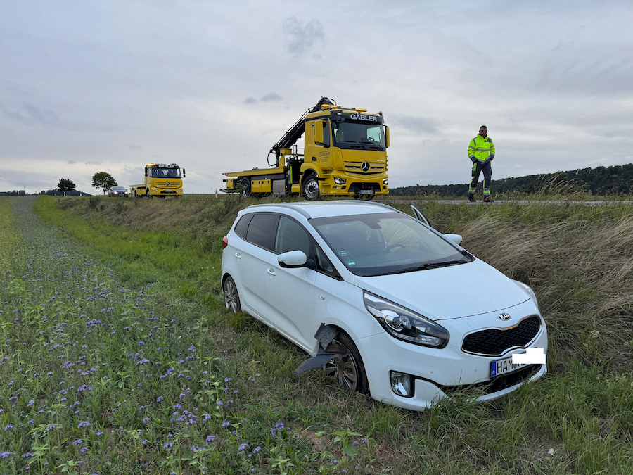 Am 17. September gegen 18.15 Uhr befuhr ein 63 Jahre alter Mann aus Korbach die Strecke von Ober-Waroldern in Richtung Nieder-Waroldern; aus ungeklärter Ursache verlor er die Kontrolle über den Personenkraftwagen und geriet neben die Fahrbahn.