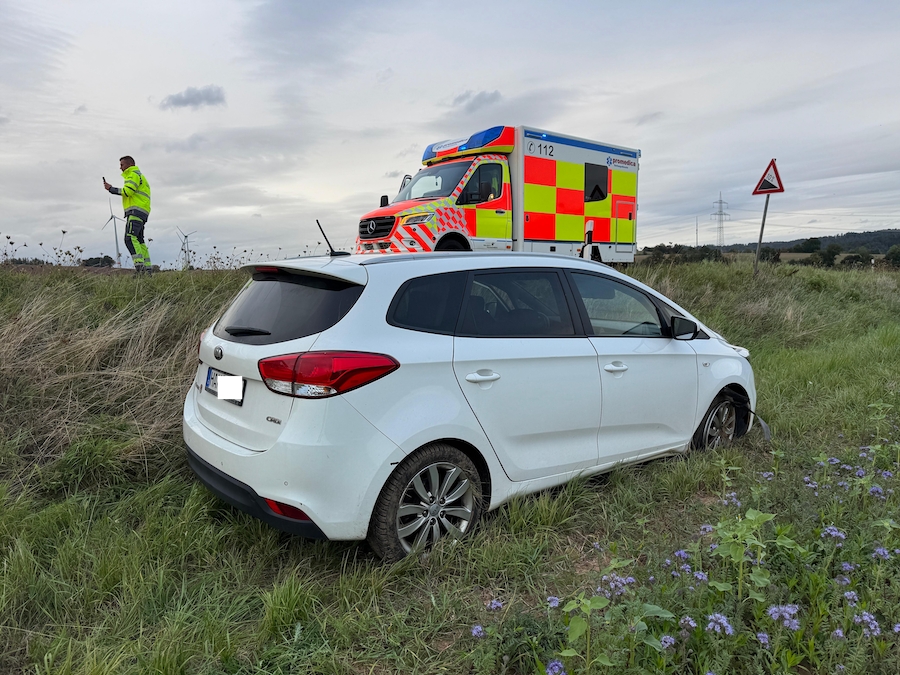 TWISTETAL. Zwischen Ober-Waroldern und Nieder-Waroldern kam ein weißer Kia von der Fahrbahn ab und blieb in einem Feld stehen.