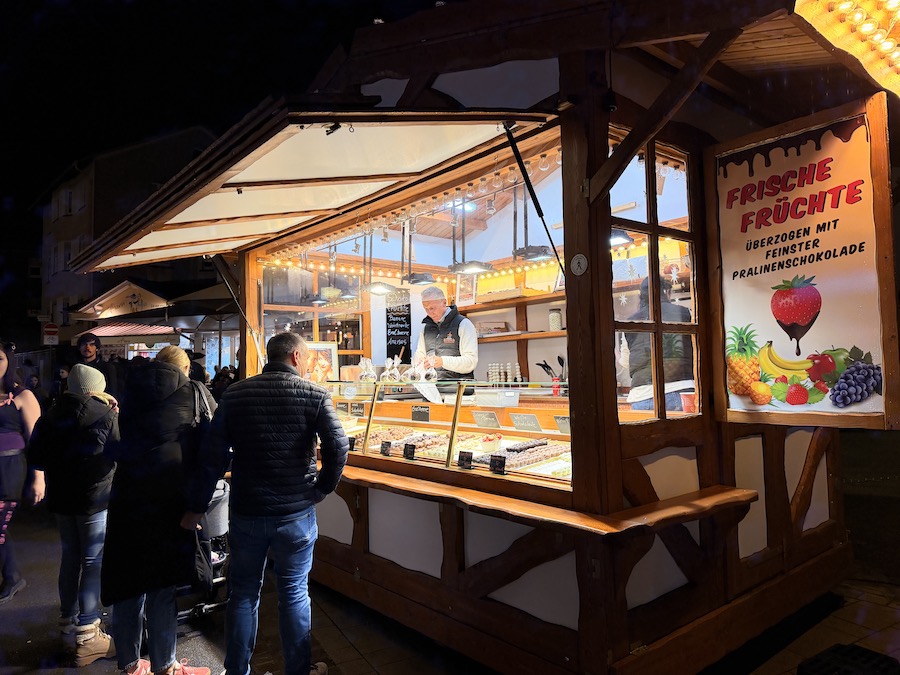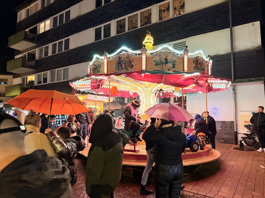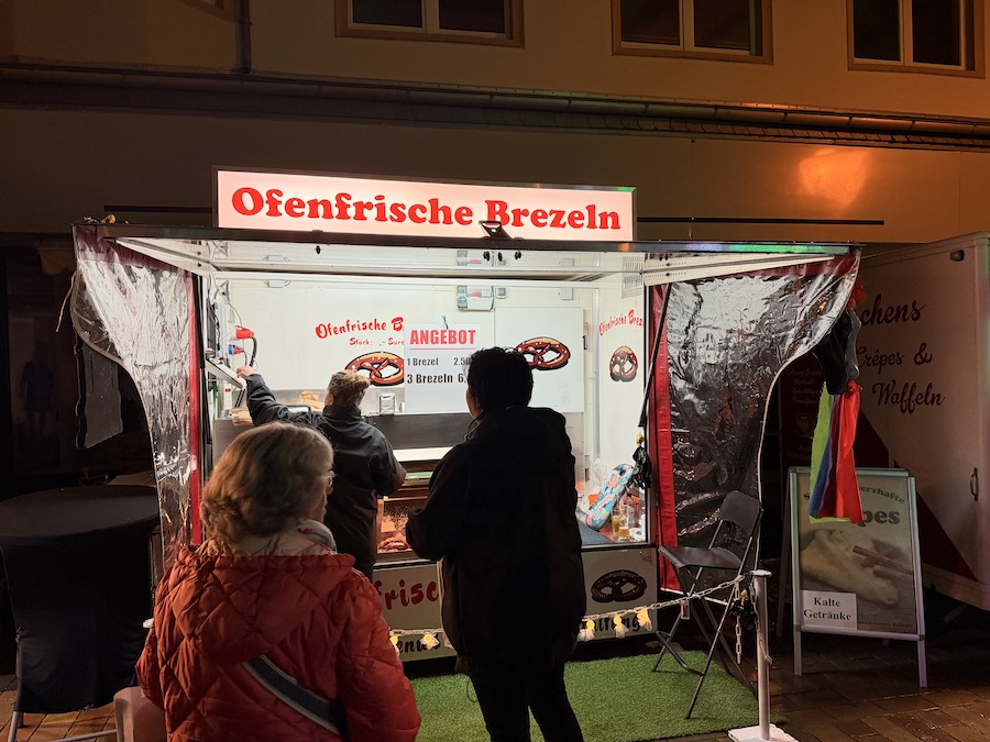 Auch das Preisbild des Abends gehörte dazu: Hamburger 6,50 Euro, Currywurst mit Pommes 7,50 Euro, Fischbrötchen ab 4 Euro, Fleischspieß 9 Euro, Kinderkarussell 2,50 Euro pro Fahrt. Gegen Ende blieben zahlreiche Stände noch gut besucht; viele nutzten die regenfreie Phase zum Bummeln, Schauen und Naschen.