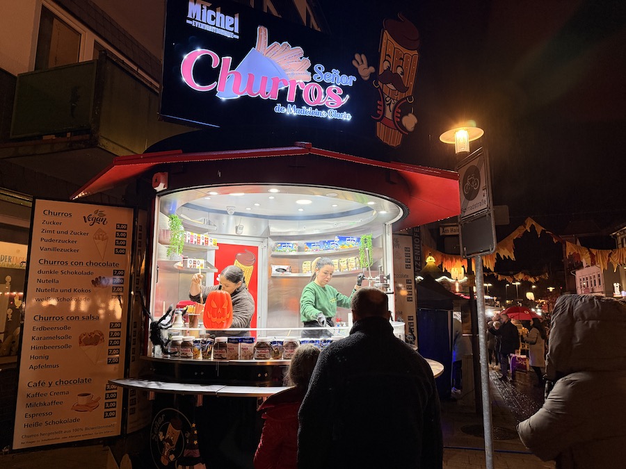 Entlang der gesamten City reihten sich Verkaufsstände mit Taschen, Accessoires und Süßwaren, dazu Streetfood von Burgern bis Churros. Besonders auffällig: Die Dönerbuden von Jahnstraße bis hin zum Bahnhof waren zeitweise proppevoll, Schlangen inklusive.